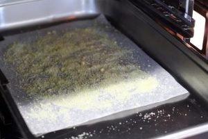 Parmesan râpé verser une couche uniforme sur une plaque à pâtisserie avec papier sulfurisé et mettre au four (180 degrés) pendant 10 minutes. Nous sortons, refroidissons et brisons en petits morceaux.
