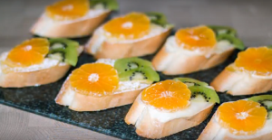 - Placez les tranches de mandarine sur le fromage et kiwi