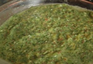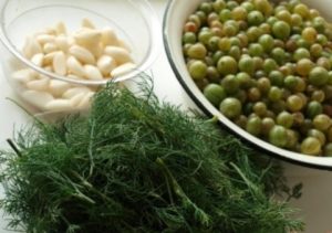 - Passer les groseilles à maquereau, l’ail et l’aneth dans un hachoir à viande. Ajouter Pour goûter le sucre et le sel, mélanger.