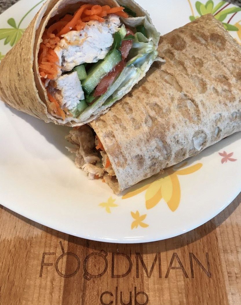 - Garnir de tomates, concombres, herbes, poulet et les carottes.