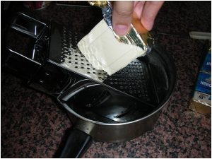 - Ajouter le fromage à une grande râpe et ajouter dans. Éteignez le feu.