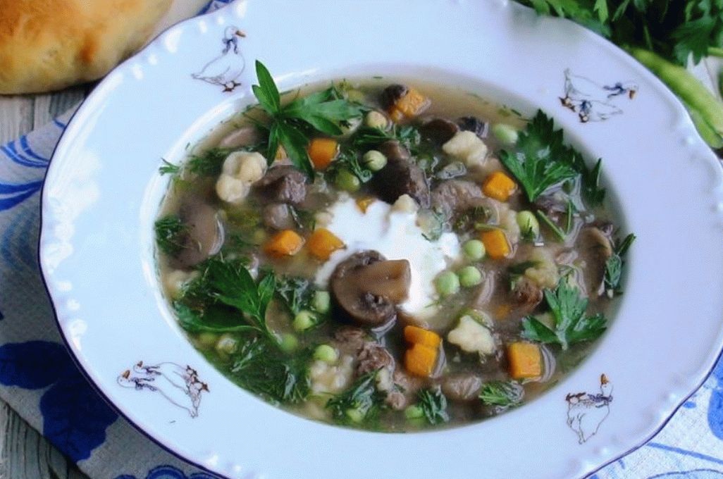 Soupe aux champignons parfumée, préparée avec des quenelles et le foie. Une recette de premier plan très savoureuse et intéressante pour l’ensemble la famille Va faire?