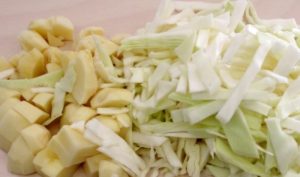 - Mettez les pommes de terre et le chou, les légumes sautés et viande Activer le mode Extinction (30 min.)