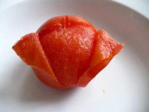 - Blanchir les tomates, les peler et les couper en petits cubes. Frire pendant 5 minutes.