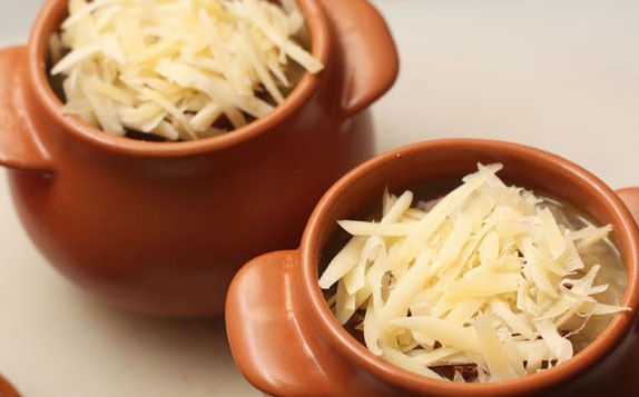 - Verser dans des assiettes, saupoudrer de fromage et au micro-ondes pendant 1 minute.