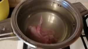 - Ajoutez des ailes à une casserole d’eau. Comment faire bouillir, saler et ajoutez des épices.