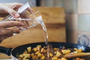 - Couper la viande en dés. Chauffer la poêle avec l’ajout de les huiles. Faire frire la viande.