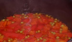 - Versez de l’eau bouillante et mettez de la pâte de tomate. Mettez les pois dans un bol et tout mélanger. Saler.