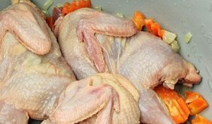 - Mettez des carcasses d’oiseaux séchées sur eux. Fermez le couvercle mijoteuse et frire 5 minutes.