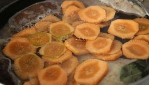 - On étale les cercles de carottes dans le bouillon, on fait cuire 10 minutes et on ajoute fig.