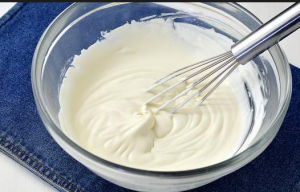 - Dans un autre récipient, connectez les œufs, la vanilline, 2 c. farine, sucre et crème sure. Battre le remplissage jusqu’à l’obtention d’une consistance homogène.